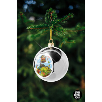 Dinosaur's world, Στολίδι Χριστουγεννιάτικη μπάλα δένδρου Ασημένια 8cm