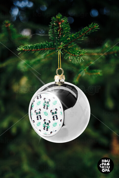 Panda, Στολίδι Χριστουγεννιάτικη μπάλα δένδρου Ασημένια 8cm