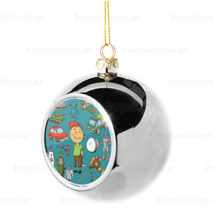 Toys Boy, Στολίδι Χριστουγεννιάτικη μπάλα δένδρου Ασημένια 8cm