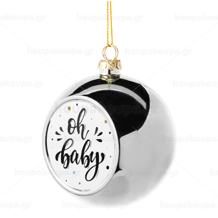Oh baby, Στολίδι Χριστουγεννιάτικη μπάλα δένδρου Ασημένια 8cm