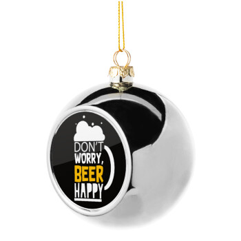 Don't worry BEER Happy, Στολίδι Χριστουγεννιάτικη μπάλα δένδρου Ασημένια 8cm