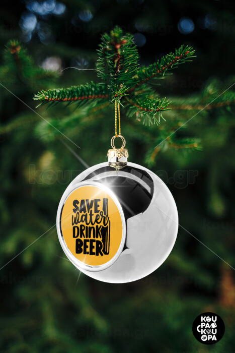 Save Water, Drink BEER, Στολίδι Χριστουγεννιάτικη μπάλα δένδρου Ασημένια 8cm