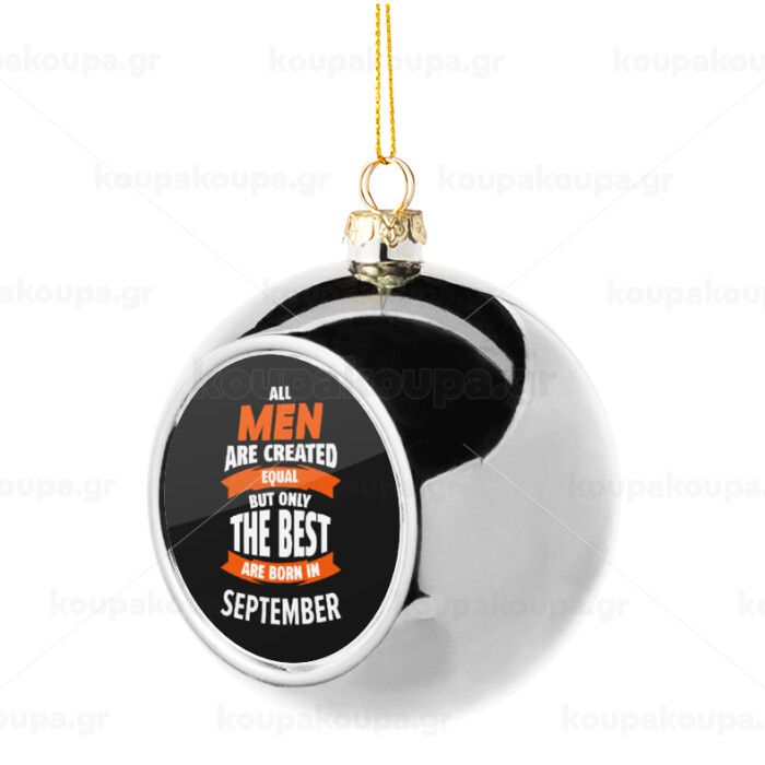 All men are created equal but only the best are born in September, Στολίδι Χριστουγεννιάτικη μπάλα δένδρου Ασημένια 8cm