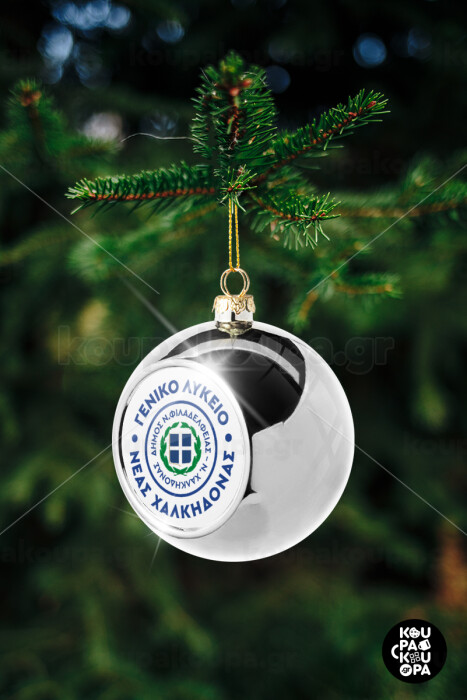 Έμβλημα Σχολικό με δάφνες, Στολίδι Χριστουγεννιάτικη μπάλα δένδρου Ασημένια 8cm