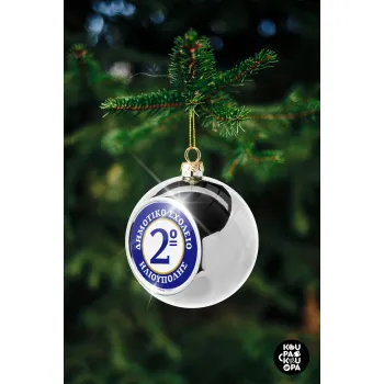 Έμβλημα Σχολικό μπλε/χρυσό, Στολίδι Χριστουγεννιάτικη μπάλα δένδρου Ασημένια 8cm