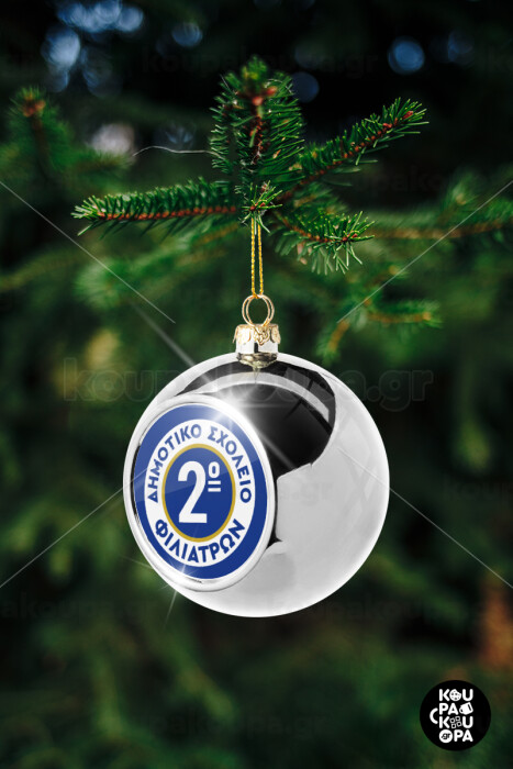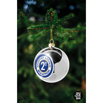 Έμβλημα Σχολικό μπλε κλασική, Στολίδι Χριστουγεννιάτικη μπάλα δένδρου Ασημένια 8cm