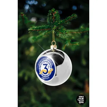 Έμβλημα Σχολικό μπλε, Στολίδι Χριστουγεννιάτικη μπάλα δένδρου Ασημένια 8cm