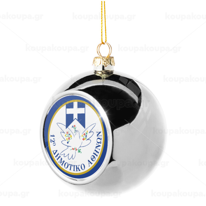 Σχολικό σήμα περιστέρι με δάφνες, Στολίδι Χριστουγεννιάτικη μπάλα δένδρου Ασημένια 8cm