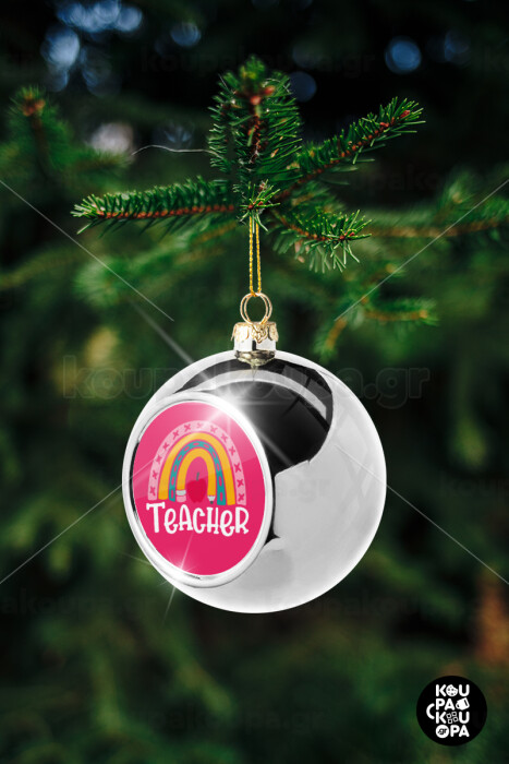 Rainbow teacher, Στολίδι Χριστουγεννιάτικη μπάλα δένδρου Ασημένια 8cm