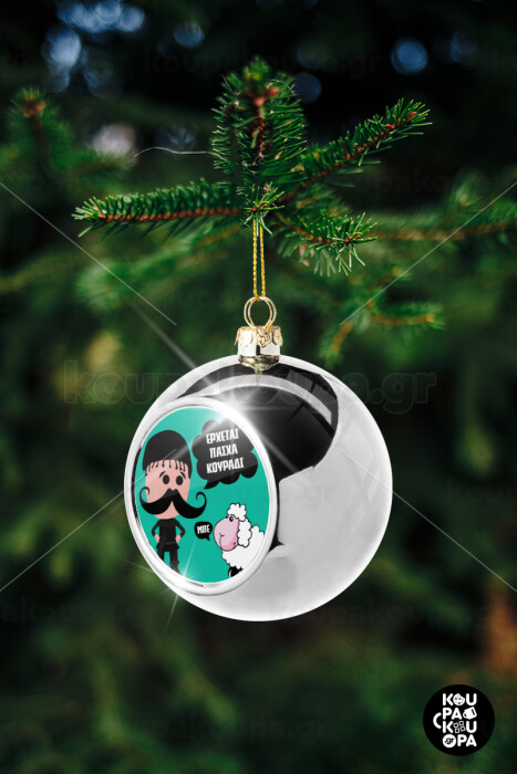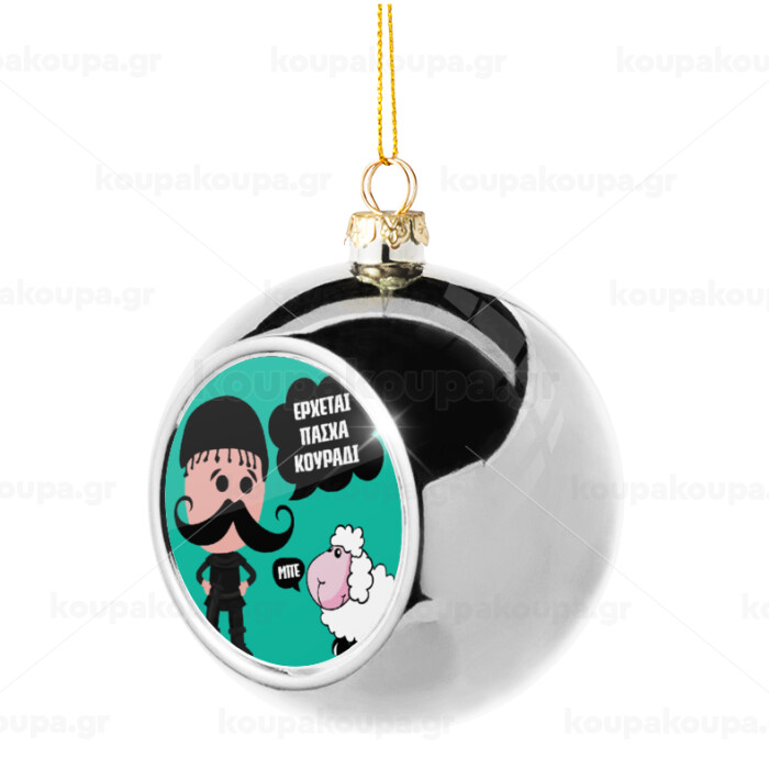 Κρητικός "Έρχεται Πάσχα κουράδι", Στολίδι Χριστουγεννιάτικη μπάλα δένδρου Ασημένια 8cm