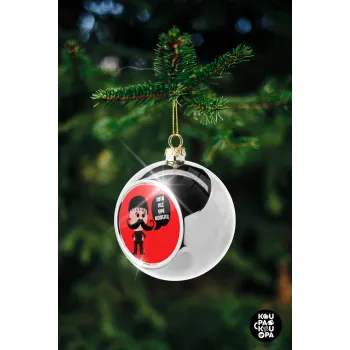 Κρητικός "Ίντα λες ωρέ κοπέλι", Στολίδι Χριστουγεννιάτικη μπάλα δένδρου Ασημένια 8cm