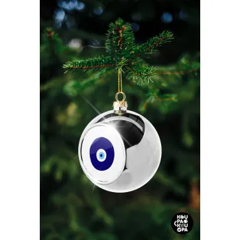 Χάντρα γαλαζιά, Στολίδι Χριστουγεννιάτικη μπάλα δένδρου Ασημένια 8cm