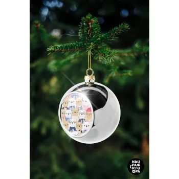 Σκύλοι, Στολίδι Χριστουγεννιάτικη μπάλα δένδρου Ασημένια 8cm