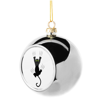 Γατούλα γρατζουνιά, Στολίδι Χριστουγεννιάτικη μπάλα δένδρου Ασημένια 8cm