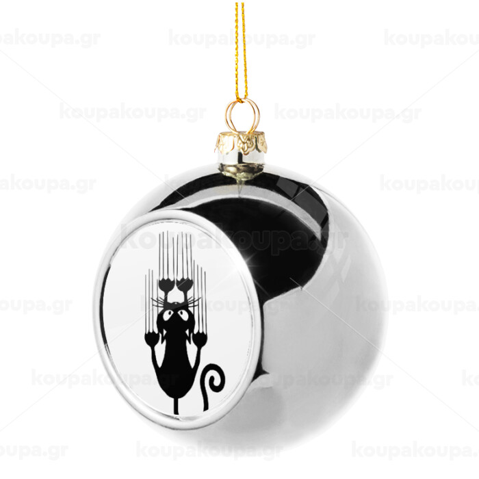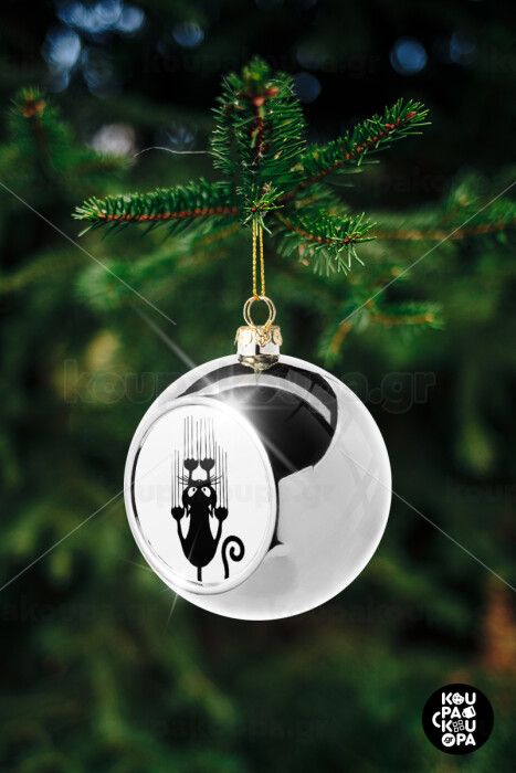 Cat scratching, Στολίδι Χριστουγεννιάτικη μπάλα δένδρου Ασημένια 8cm