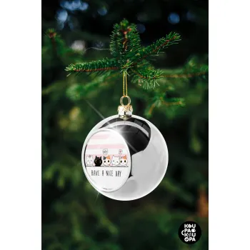 Have a nice day cats, Στολίδι Χριστουγεννιάτικη μπάλα δένδρου Ασημένια 8cm