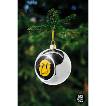 Smile avatar distrorted, Στολίδι Χριστουγεννιάτικη μπάλα δένδρου Ασημένια 8cm