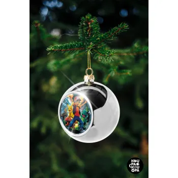 Ash Ketchum & Pikachu, Στολίδι Χριστουγεννιάτικη μπάλα δένδρου Ασημένια 8cm
