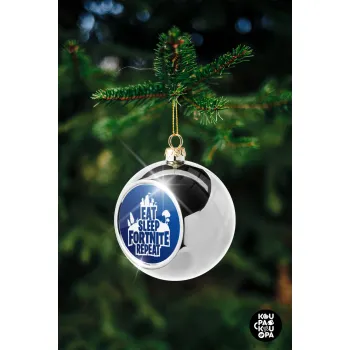 Eat Sleep Fortnite Repeat, Στολίδι Χριστουγεννιάτικη μπάλα δένδρου Ασημένια 8cm