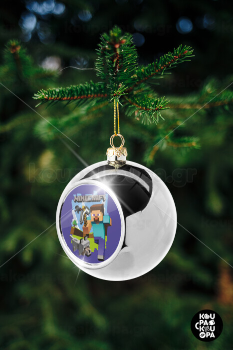 Minecraft Alex, Στολίδι Χριστουγεννιάτικη μπάλα δένδρου Ασημένια 8cm
