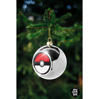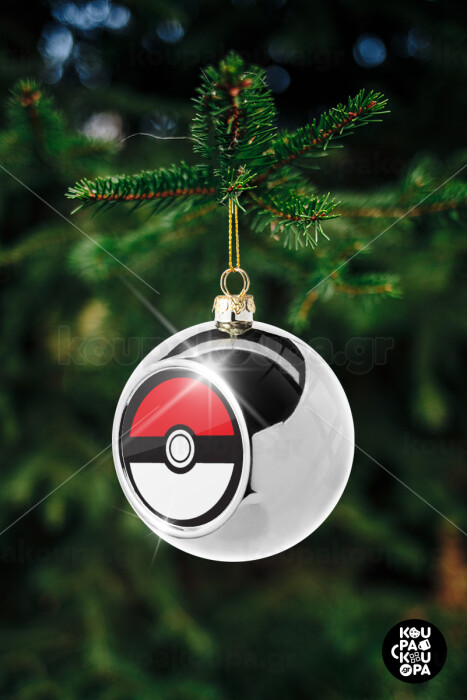 Pokemon ball, Στολίδι Χριστουγεννιάτικη μπάλα δένδρου Ασημένια 8cm