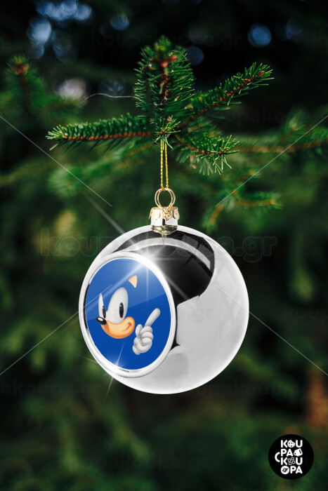 Sonic, Στολίδι Χριστουγεννιάτικη μπάλα δένδρου Ασημένια 8cm