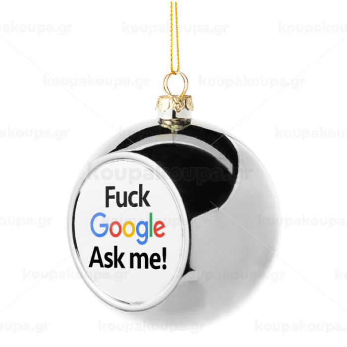 Fuck Google, Ask me!, Στολίδι Χριστουγεννιάτικη μπάλα δένδρου Ασημένια 8cm