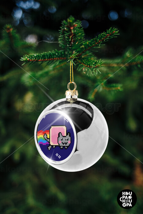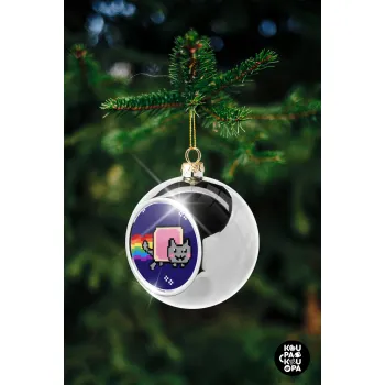 Nyan Pop-Tart Cat, Στολίδι Χριστουγεννιάτικη μπάλα δένδρου Ασημένια 8cm
