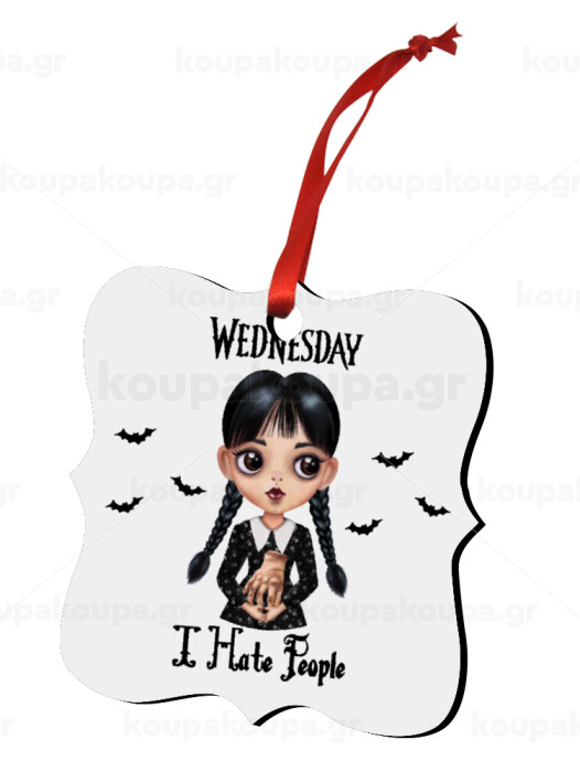 Wednesday Adams, i hate people, Στολίδι Χριστουγεννιάτικο στολίδι polygon ξύλινο 7.5cm