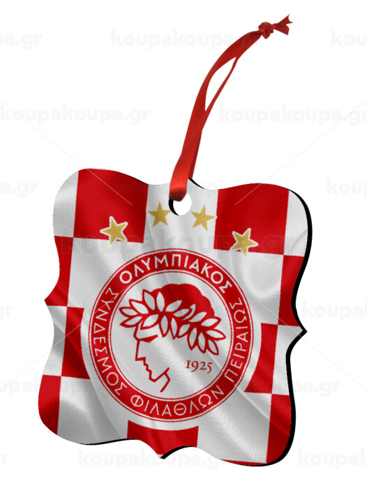 Olympiakos flag, Στολίδι Χριστουγεννιάτικο στολίδι polygon ξύλινο 7.5cm