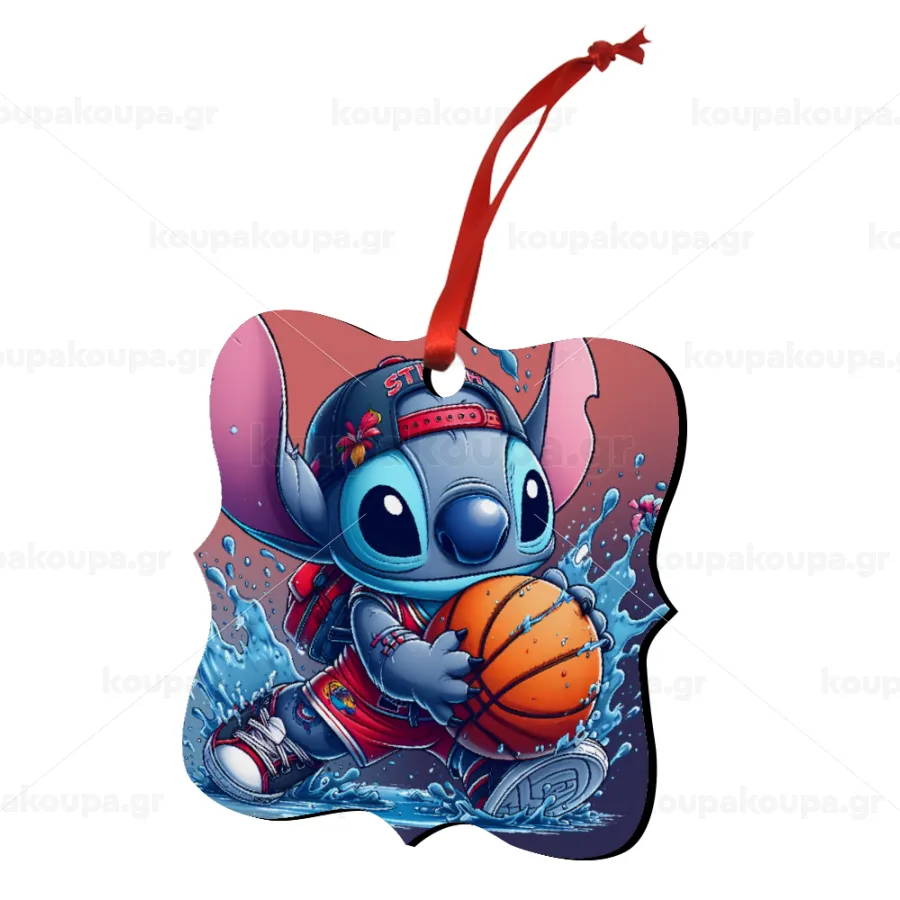 Stitch Basketball, Στολίδι Χριστουγεννιάτικο στολίδι polygon ξύλινο 7.5cm