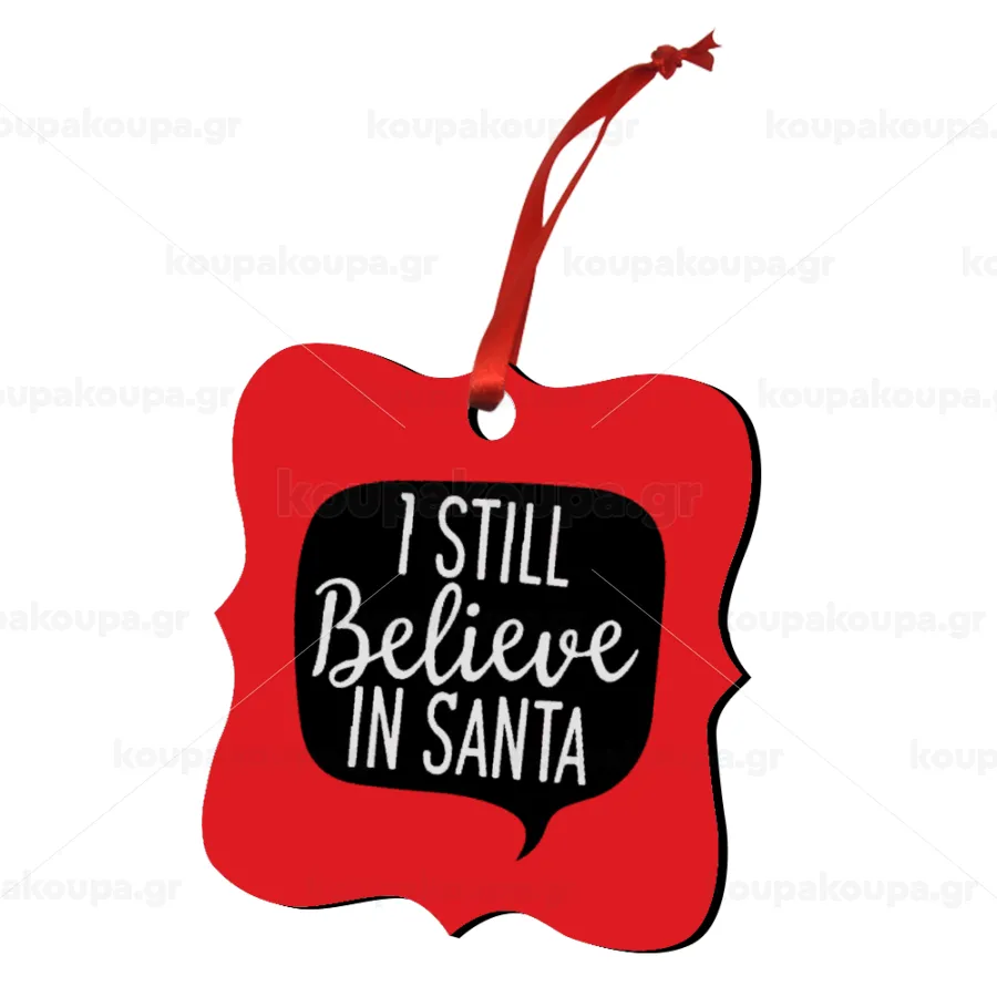 Ι still believe in santa, Στολίδι Χριστουγεννιάτικο στολίδι polygon ξύλινο 7.5cm