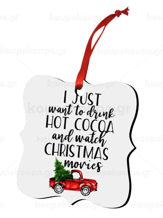 I just want to drink hot cocoa and watch christmas movies pickup car, Στολίδι Χριστουγεννιάτικο στολίδι polygon ξύλινο 7.5cm