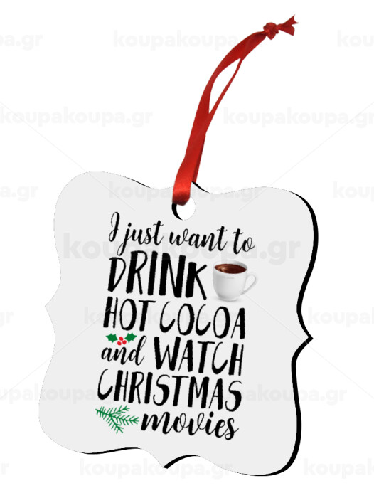 I just want to drink hot cocoa and watch christmas movies, Στολίδι Χριστουγεννιάτικο στολίδι polygon ξύλινο 7.5cm