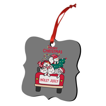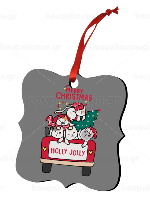 Merry Christmas cats in car, Στολίδι Χριστουγεννιάτικο στολίδι polygon ξύλινο 7.5cm