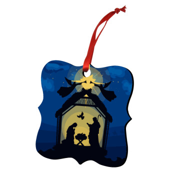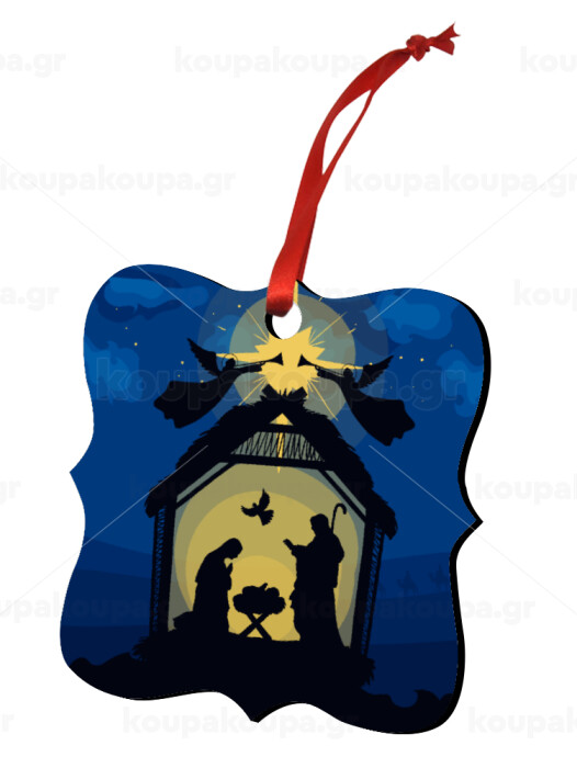 Η γέννηση του Ιησού φάτνη, Στολίδι Χριστουγεννιάτικο στολίδι polygon ξύλινο 7.5cm