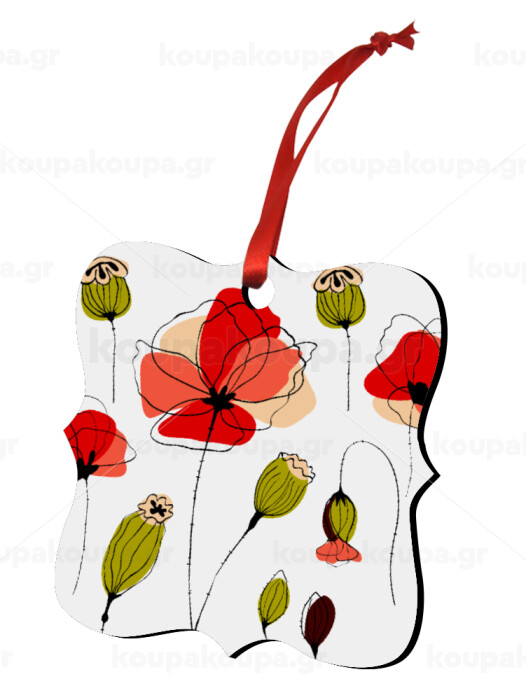 Red poppy flowers papaver, Στολίδι Χριστουγεννιάτικο στολίδι polygon ξύλινο 7.5cm