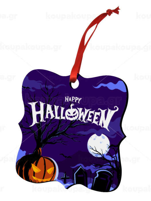 Happy Halloween cemetery, Στολίδι Χριστουγεννιάτικο στολίδι polygon ξύλινο 7.5cm