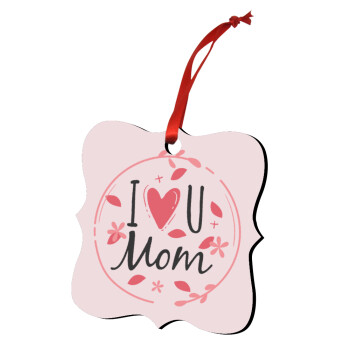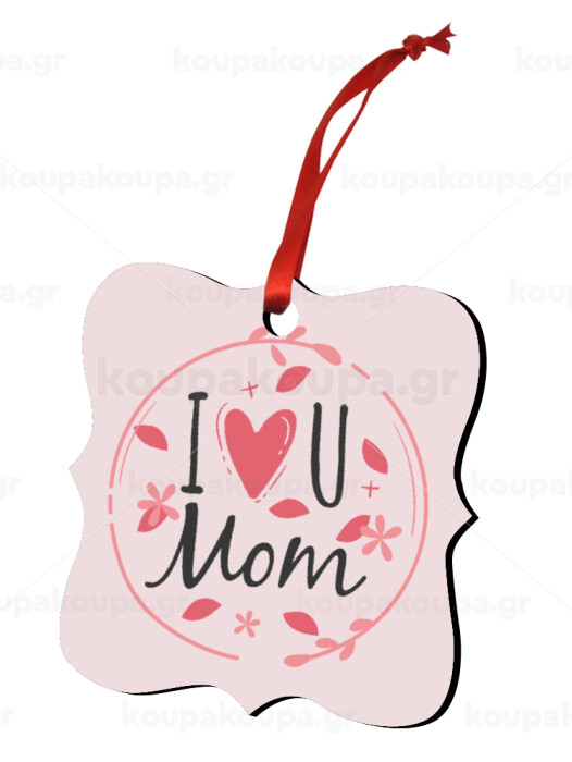 I Love you Mom pink, Στολίδι Χριστουγεννιάτικο στολίδι polygon ξύλινο 7.5cm