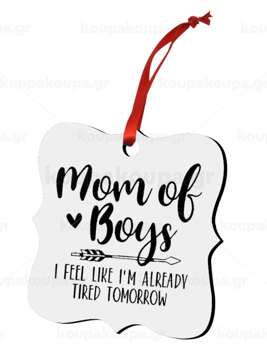 Mom of boys i feel like im already tired tomorrow, Στολίδι Χριστουγεννιάτικο στολίδι polygon ξύλινο 7.5cm