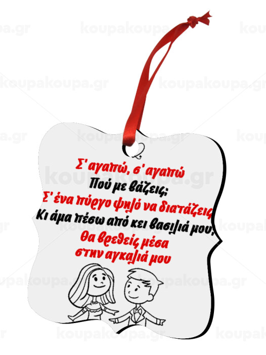 Σ΄ αγαπώ σ΄ αγαπώ που με βάζεις, Στολίδι Χριστουγεννιάτικο στολίδι polygon ξύλινο 7.5cm