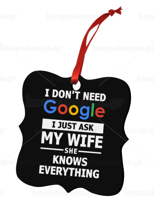 I don't need Google, just ask my WIFE, Στολίδι Χριστουγεννιάτικο στολίδι polygon ξύλινο 7.5cm