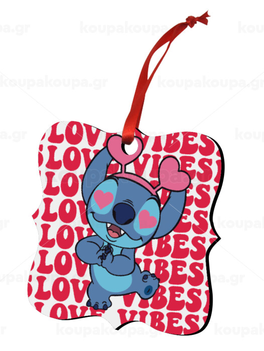 Lilo & Stitch Love vibes, Στολίδι Χριστουγεννιάτικο στολίδι polygon ξύλινο 7.5cm