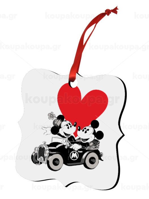 Mickey & Minnie love car, Στολίδι Χριστουγεννιάτικο στολίδι polygon ξύλινο 7.5cm