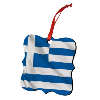 Greece flag, Στολίδι Χριστουγεννιάτικο στολίδι polygon ξύλινο 7.5cm