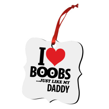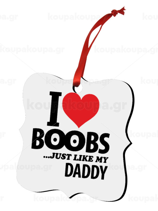 I Love boobs ...just like my daddy, Στολίδι Χριστουγεννιάτικο στολίδι polygon ξύλινο 7.5cm
