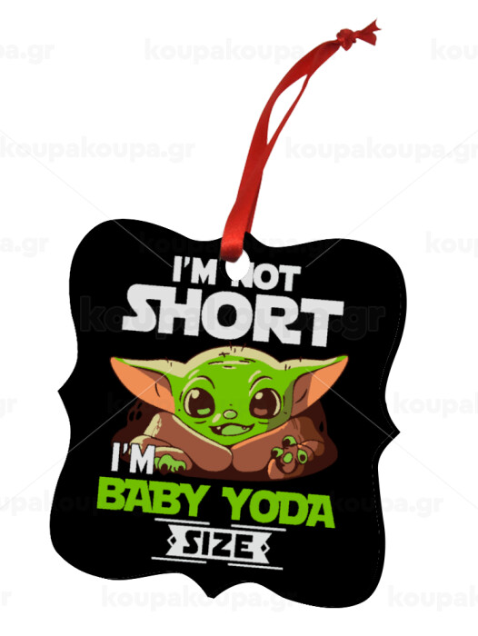 I'm not short, i'm Baby Yoda size, Στολίδι Χριστουγεννιάτικο στολίδι polygon ξύλινο 7.5cm