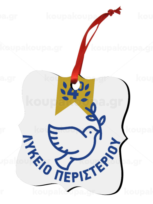 Σχολικό σήμα περιστέρι με δάφνες, Στολίδι Χριστουγεννιάτικο στολίδι polygon ξύλινο 7.5cm