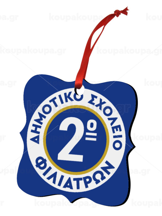 Σχολικό σήμα κορδέλα, Στολίδι Χριστουγεννιάτικο στολίδι polygon ξύλινο 7.5cm