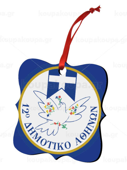 Σχολικό σήμα κορδέλα, Στολίδι Χριστουγεννιάτικο στολίδι polygon ξύλινο 7.5cm